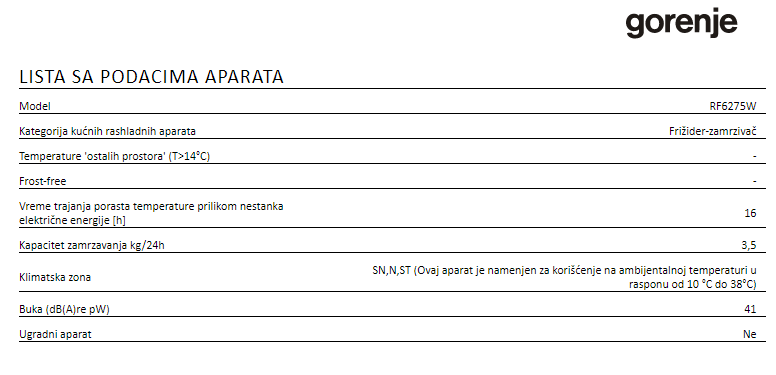 | Proizvođač | GORENJE DOO BEOGRAD |